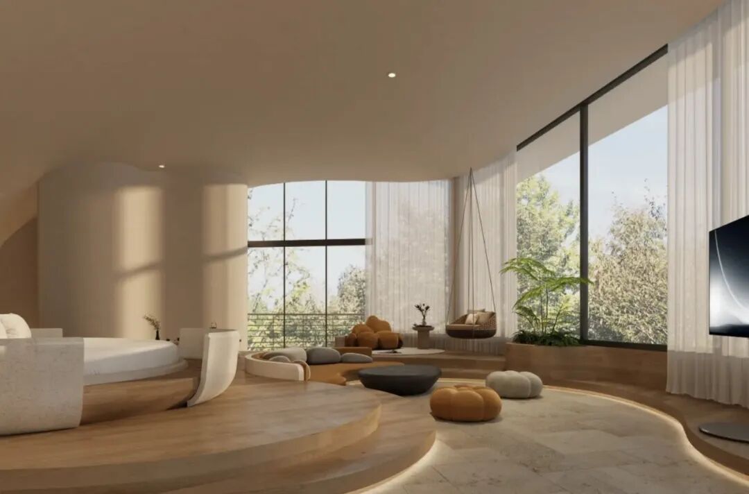 住也是森泊非常奇趣的一环,武汉森泊有585间客房,其中就有全人造榕树树屋、临湖船屋、豆荚木屋等等明星房型……