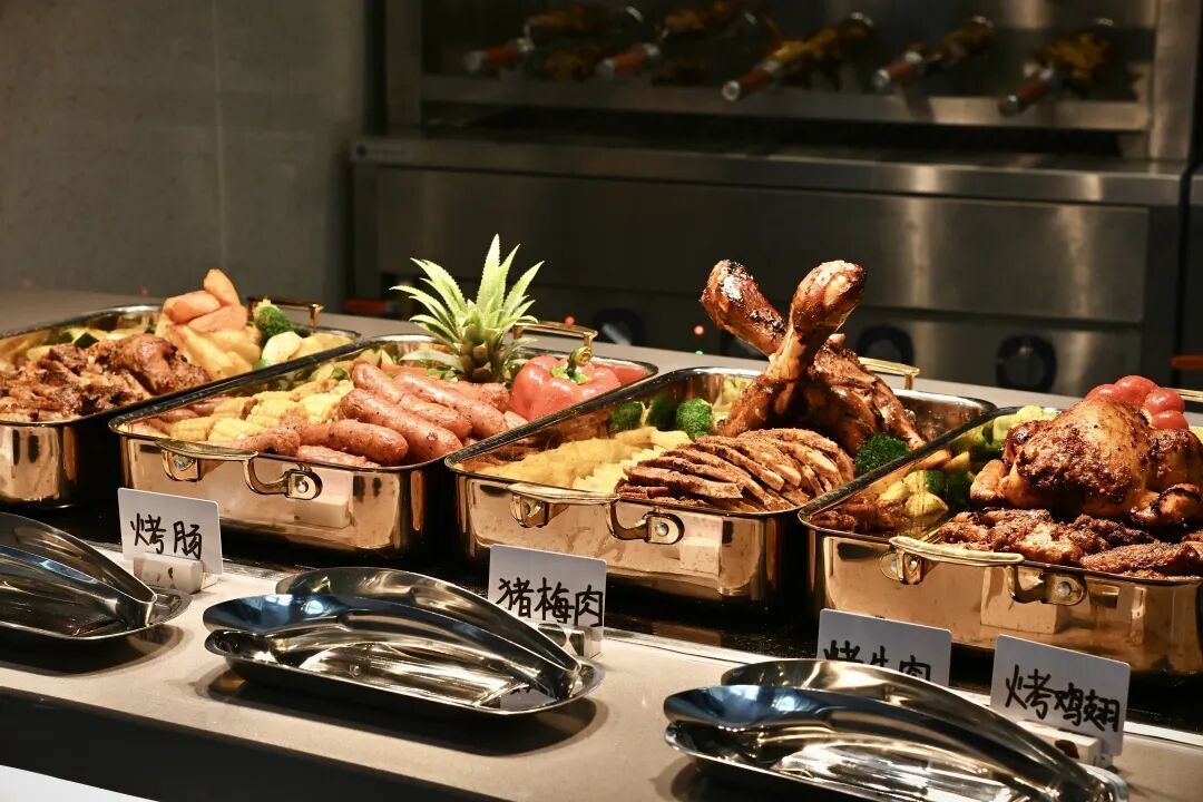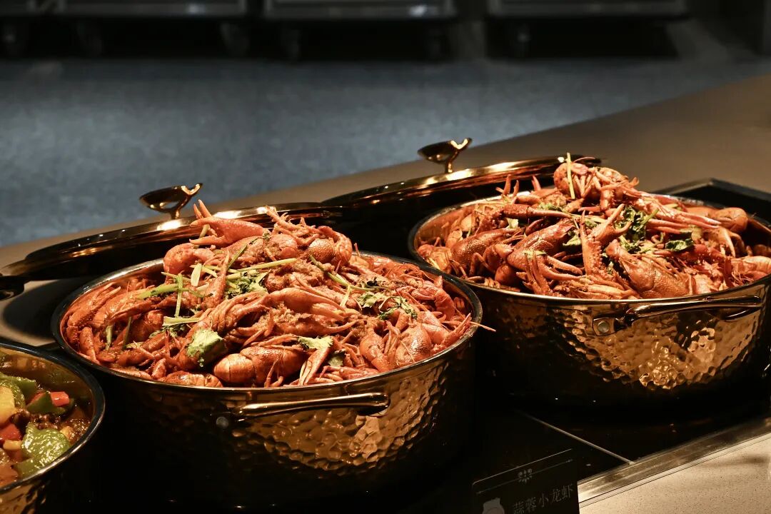 我们在这里吃了早晚餐,晚餐各种各样的海鲜、烧烤、串串、刺身、牛羊排都有,整体丰富。也有武汉的当家花旦——小龙虾,先保证大人们能吃到爽。