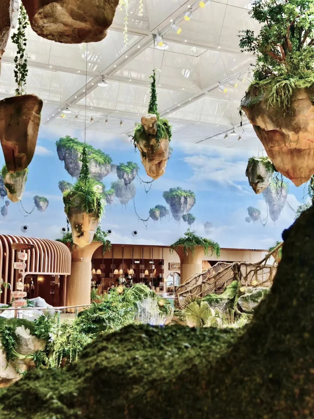 乐园的大堂有点阿凡达的味道,半空中的悬浮山,仿佛异次元中的奇幻场景。