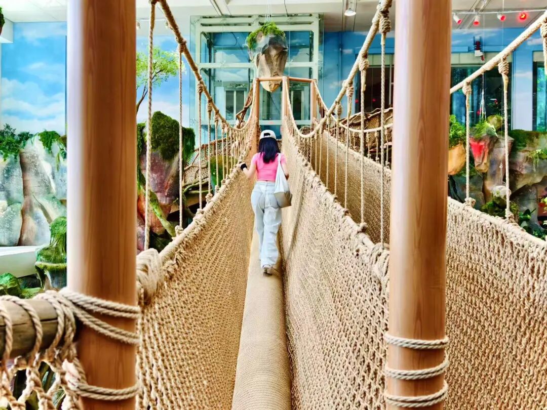 还有个木质的悬空吊桥,真是处处都在激发孩子探索、想像的热情,去亲自试了一下也很稳,不至于让孩子太害怕。