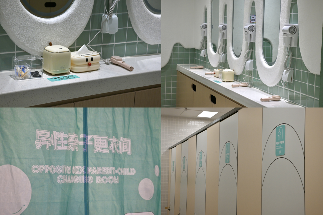 乐园不能只看表面功夫,更得讲究背后功夫够不够扎实。森泊就把相应的配套——换衣区沐浴区也做的狠精致,无论是配色还是装饰,无处不是温馨可爱的画风,而且还特别设置了“异性亲子换衣区”,一人一间免尴尬,细节非常到位。
