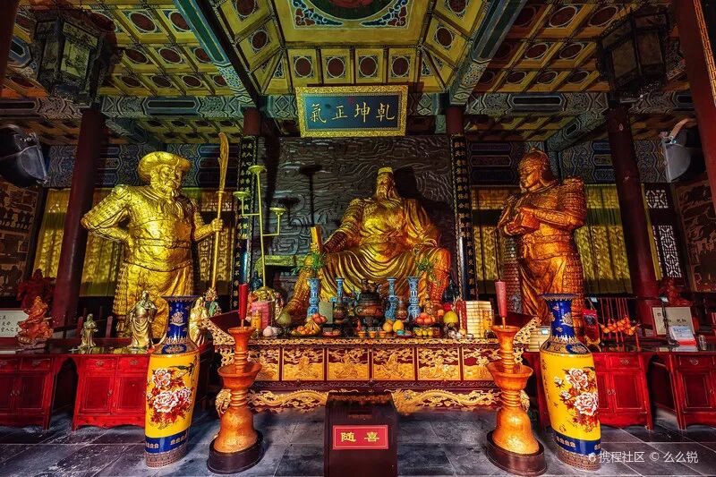 虽然现在的关帝庙经过多次重修,但庙宇殿堂的气势丝毫不减当年,院内几尊关羽塑像栩栩如生,正殿两侧绘制着关羽镇守荆州的典故壁画,后院里一棵百年古银杏从明洪武年间到如今,见证了关帝庙的百年历史变迁,庙宇整体布局虽然简单,却尽显关羽一生本色。