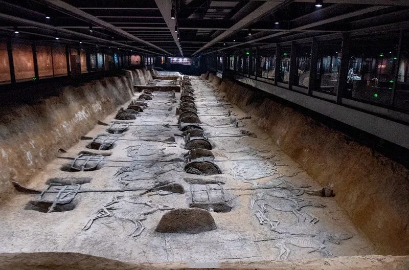 40座车马坑组成了楚王车马阵的全貌,在这里你可以看到“天子驾六”的气势恢宏,庞大的规模让楚国“千乘之国”的名号得到了具象化的体现,将昔日楚国的雄厚国力呈现在世人眼前,配上数字化影像展示,仿佛回到了那个兵家纷争的年代。