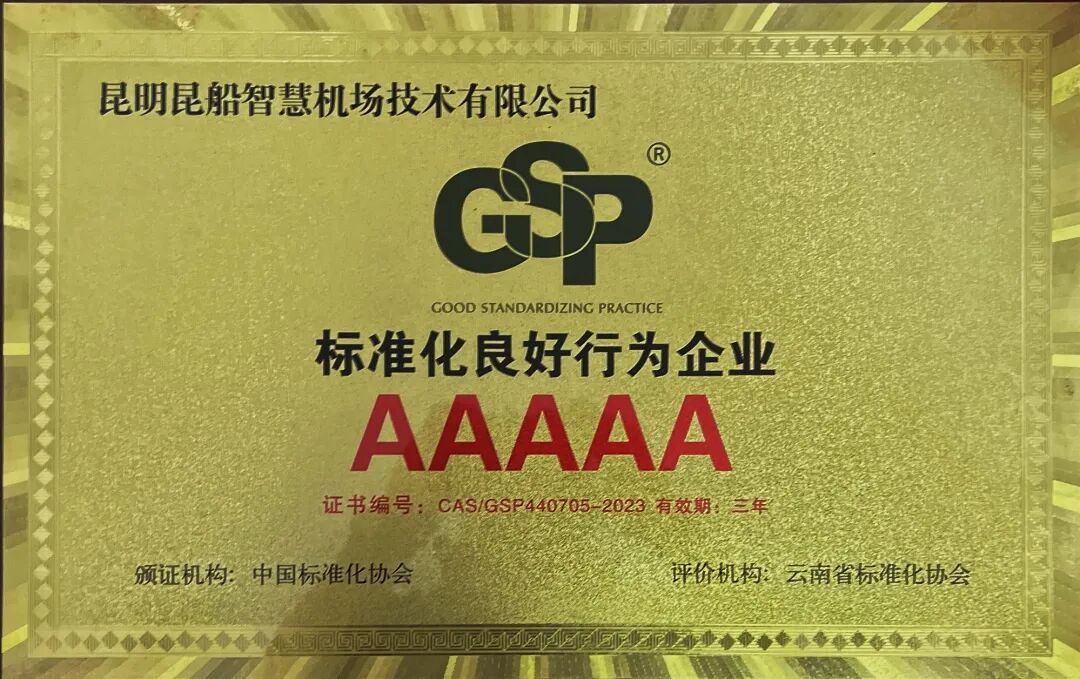 荣膺5A级标准化良好行为企业证书,是昆船机场公司标准化建设的重要里程碑。接下来,昆船机场公司将按照国家标准化要求,立足产品质量,对标国际一流的标准化理念。聚焦标准的“数字化”、“智慧化”机场,持续开展标准化的科技创新与管理创新,助力企业高质量发展。