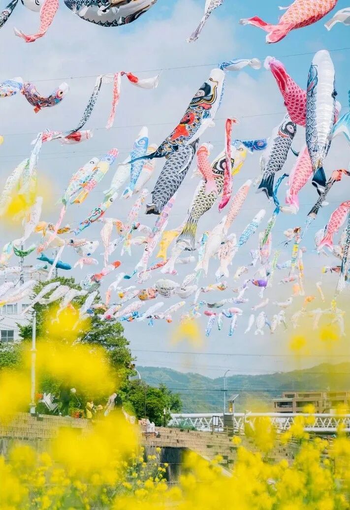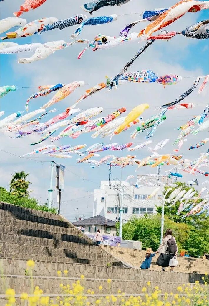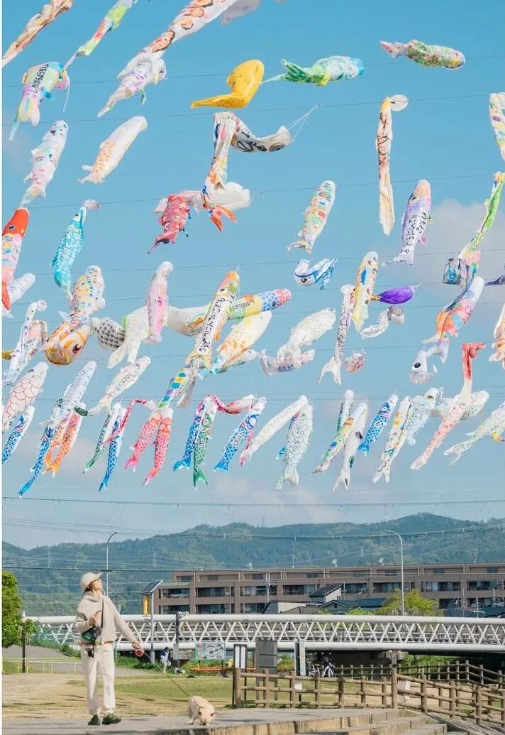 在大阪北部,坐落着一个小众城市——高槻,每年5月5日都会举办日式儿童节,从4月下旬开始,天空中就开始飘起色彩斑斓的鲤鱼旗祈愿,好似鲤鱼真的飞上了天空,随风起舞,无比梦幻。