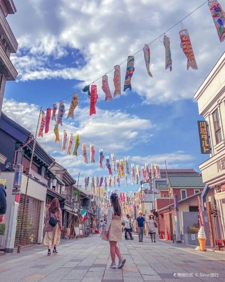 素有“小江户”之称的川越,自3月下旬就挂起了鲤鱼旗,虽然只有几百面,但都集中在大正浪漫梦通,复古的房屋搭配五彩缤纷的鲤鱼旗,奇妙的和谐。小朋友牵手跑过街道,留下一连串清脆的笑声,相当治愈。