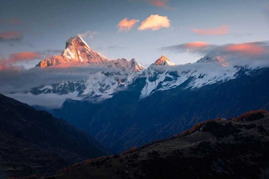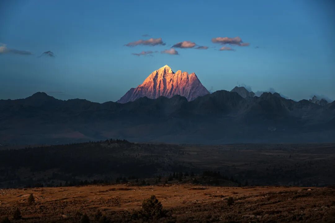 傍晚的风马旗哗啦啦响,夕阳把雅拉雪山和贡嘎群峰染成粉紫色。随手一拍都是《国家地理》同款大片!如果天气晴好,还能看到贡嘎主峰倒映在云海中的“双日照金山”奇观。