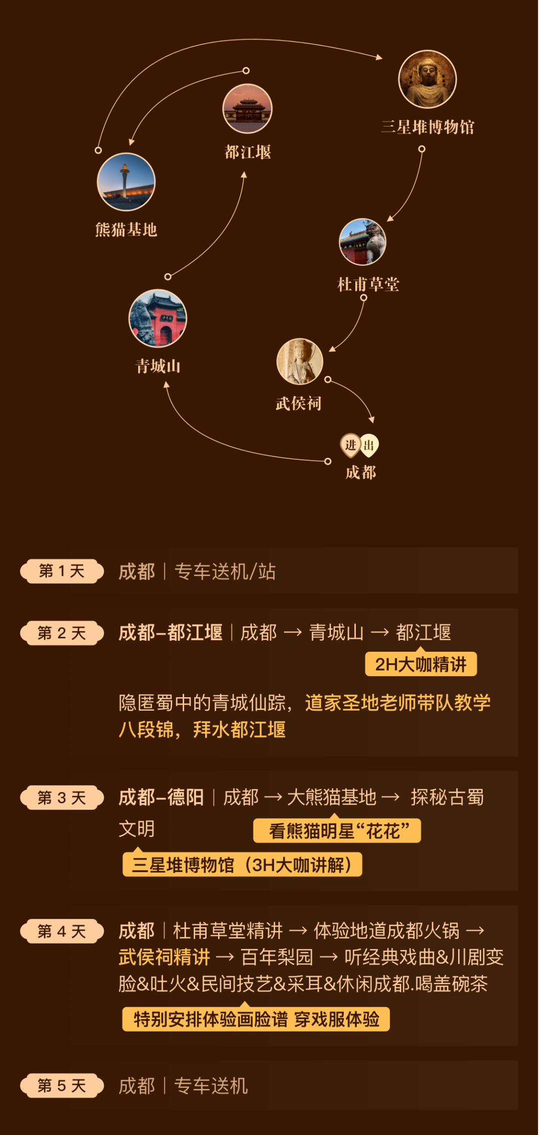 这趟巴蜀研学之旅,我们在三星堆+武侯祠+都江堰,这三个核心景点都安排了专家讲解,这个部分我们下了大血本,成本超过了1000+/人,目标就是让大家不虚此行。