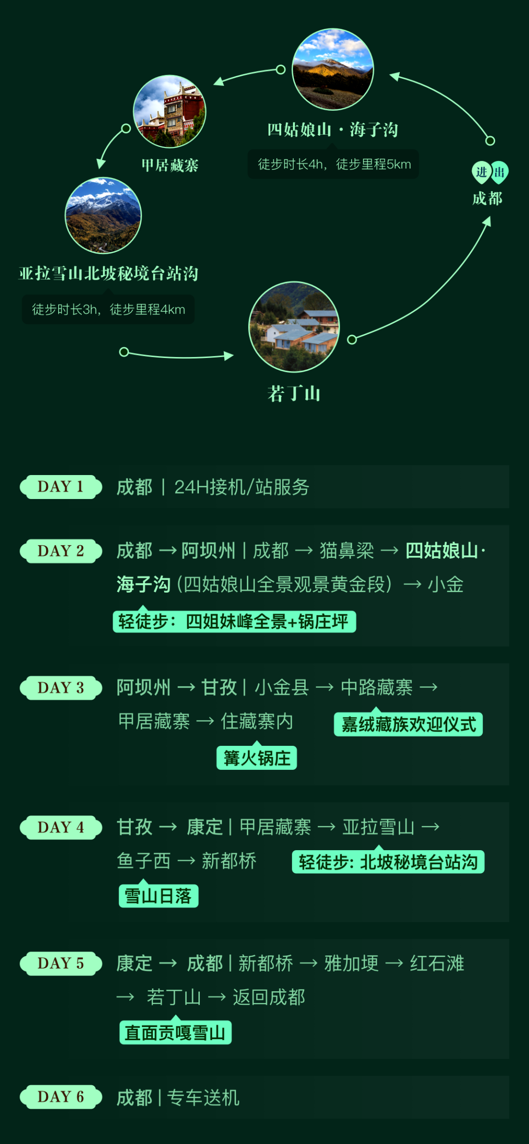 3. 「秘境系列|探秘川西· 雪山巡礼」成都+四姑娘山+甲居藏寨+新都桥6日游