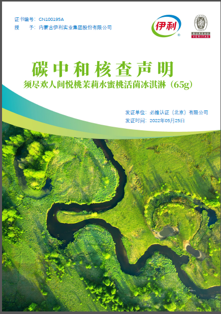 伊利须尽欢人间悦桃冰淇淋获得必维颁发的产品碳中和核查声明,成为中国首款“零碳冰激凌”