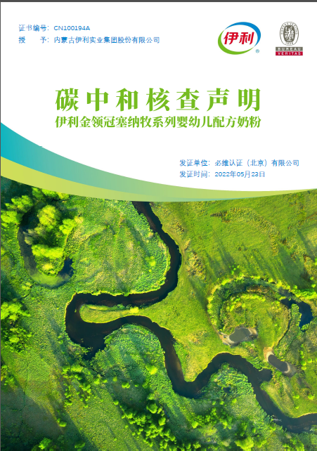 必维为伊利金领冠塞纳牧有机奶粉颁发产品碳中和核查,见证国内首款“零碳奶粉”的诞生