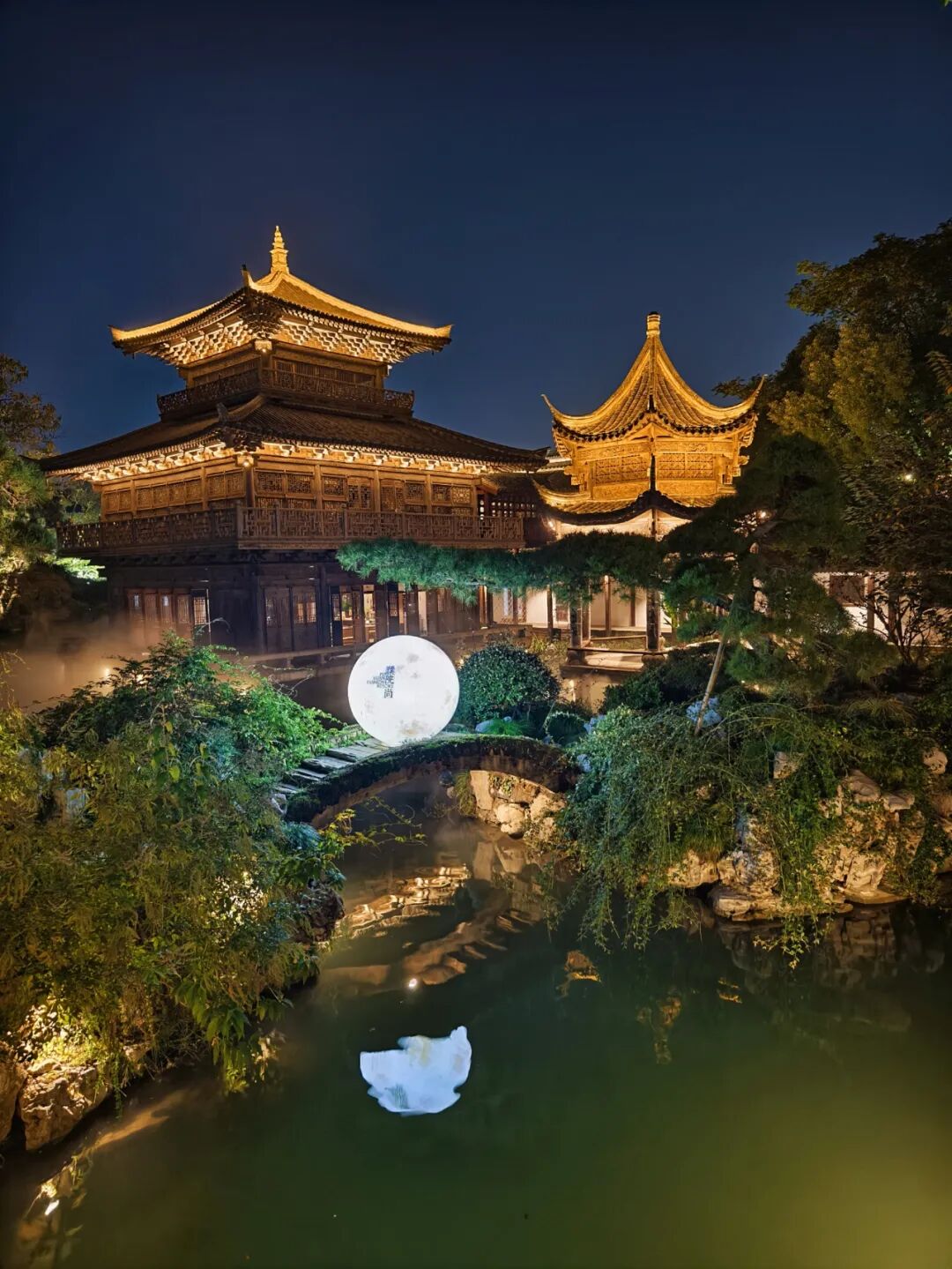 江南古镇总少不了游船,旖旎蜿蜒的河道倒映着古镇风光,乘船从游客中心出发沿河漫游古镇,聆听着船娘吟唱的童谣,时间仿佛在此刻都变得缓慢起来,入夜后,乘船循着“藏宝图”的指引完成3处灯光谜题便能获得小礼物,趣味感拉满。