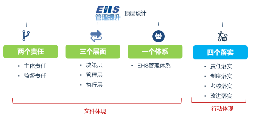 指导试点公司开创性地提出了“一个体系、两个责任、三个层面、四个落实”的HSE顶层设计,即明确HSE管理的主体责任与监督责任。通过决策层、管理层、执行层三个层面多级管控,形成系统化的体系文件要求,最终通过责任落实、制度落实、考核落实和改进落实,实现体系的落地。后续各类HSE工作均能进行响应和印证。