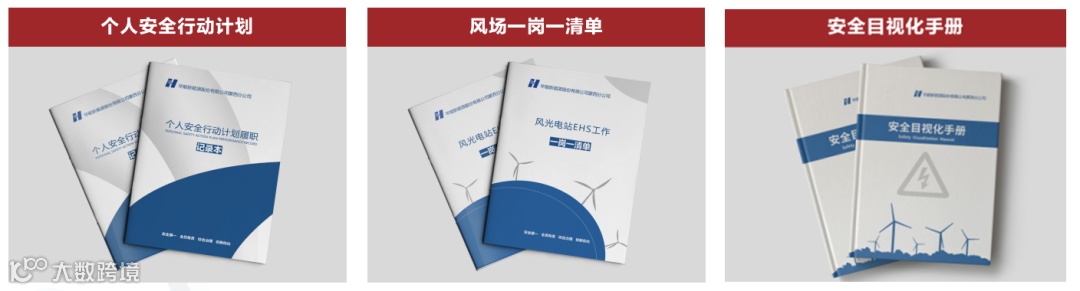 针对风场电站现场安全目视化管理的提升,引入标准化的风场电站安全目视化手册,明确生产辅助区、风电发电机组、站内生产区、施工区等安全标识的法定要求和企业要求。同时对于多个风场电站横向管理也提供的了标准化、统一化的管理依据。
