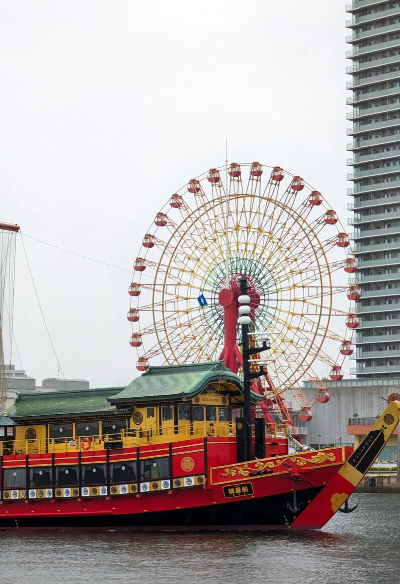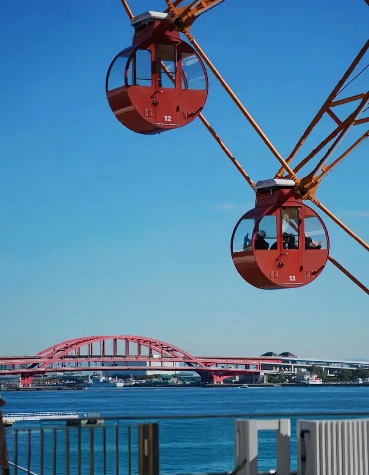 公园前方就是神户标志性建筑神户港塔和马赛克摩天轮,从任何角度拍都很美。推荐在摩天轮旁边二楼露台吃饭,视野很好,可以边看海边吃饭,超级惬意。