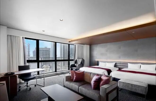 酒店设计融合了日本传统与欧洲风格,舒适而稳重。