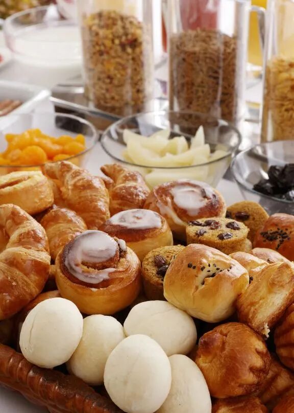早餐很丰盛,牛肉、咖喱、鲷鱼、各色神户糕点面包等都有,比较日式。