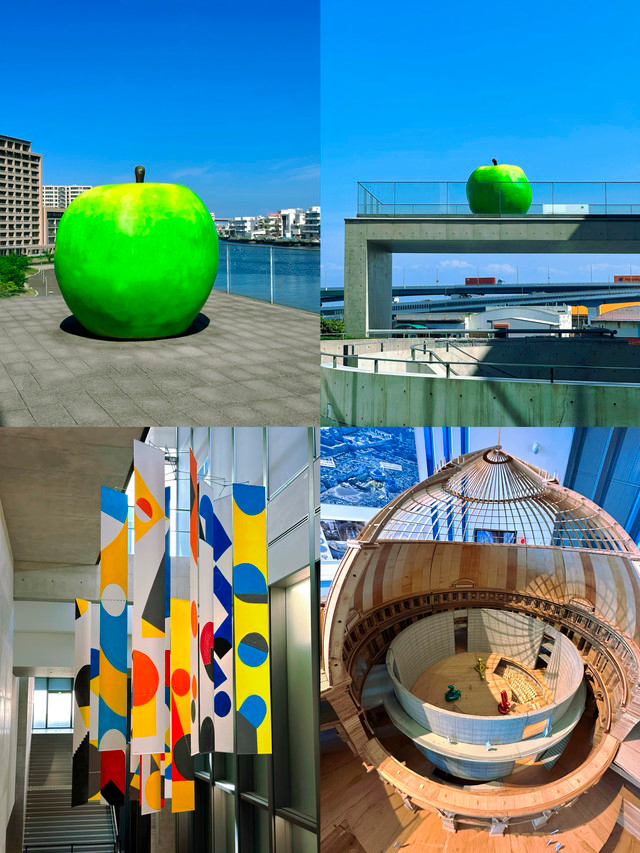 神户兵库县立美术馆,由安藤忠雄操刀设计,其中包含了很出片的水泥螺旋楼梯和象征青春的绿色苹果雕塑。