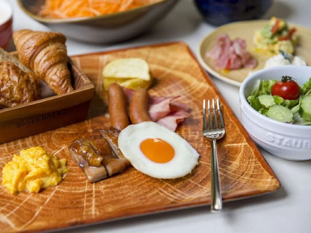 早餐是自助餐的形式,有厨师现烤的火腿和奶酪煎蛋卷,推荐大仓神户传统法式土司和煎饼,很好吃。酒店也提供送餐服务,在房间也能美美饱餐。