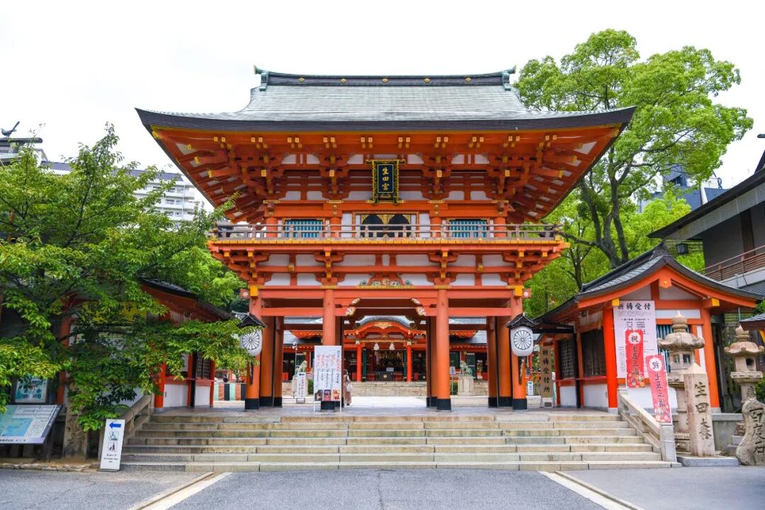 祈福姻缘可以去生田神社,据说特别灵验。中央的大殿很漂亮,右后侧有一棵超500年树龄的神树。现在正是樱花季,还能在院内樱花树下共相约、求良缘,更加吉利。
