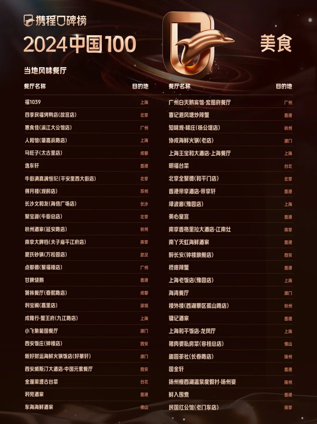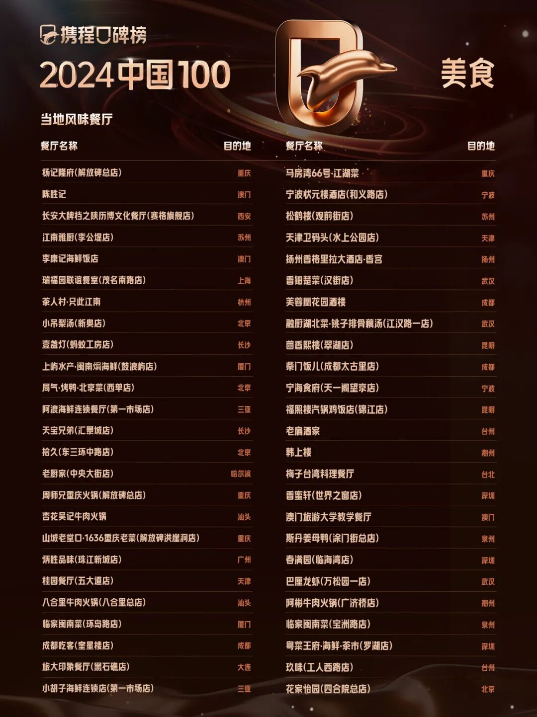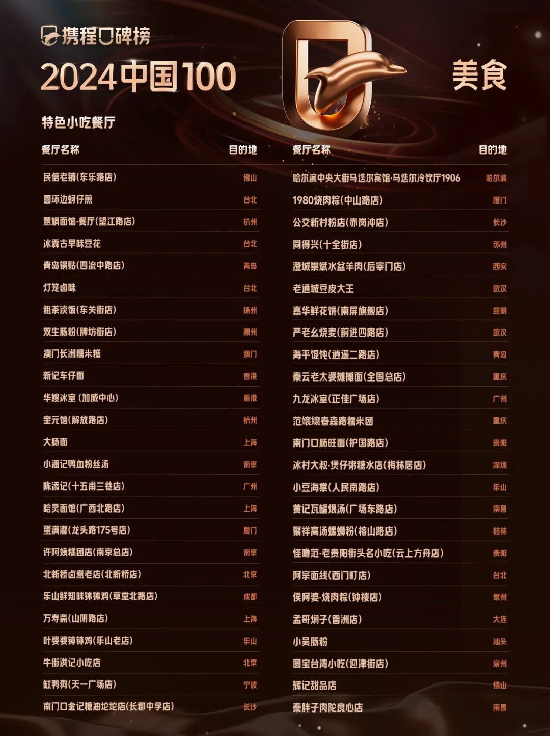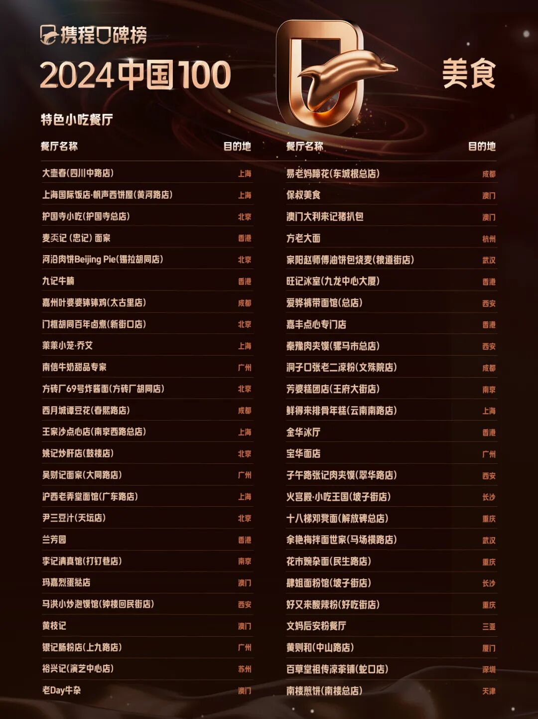 携程口碑榜2024中国100美食