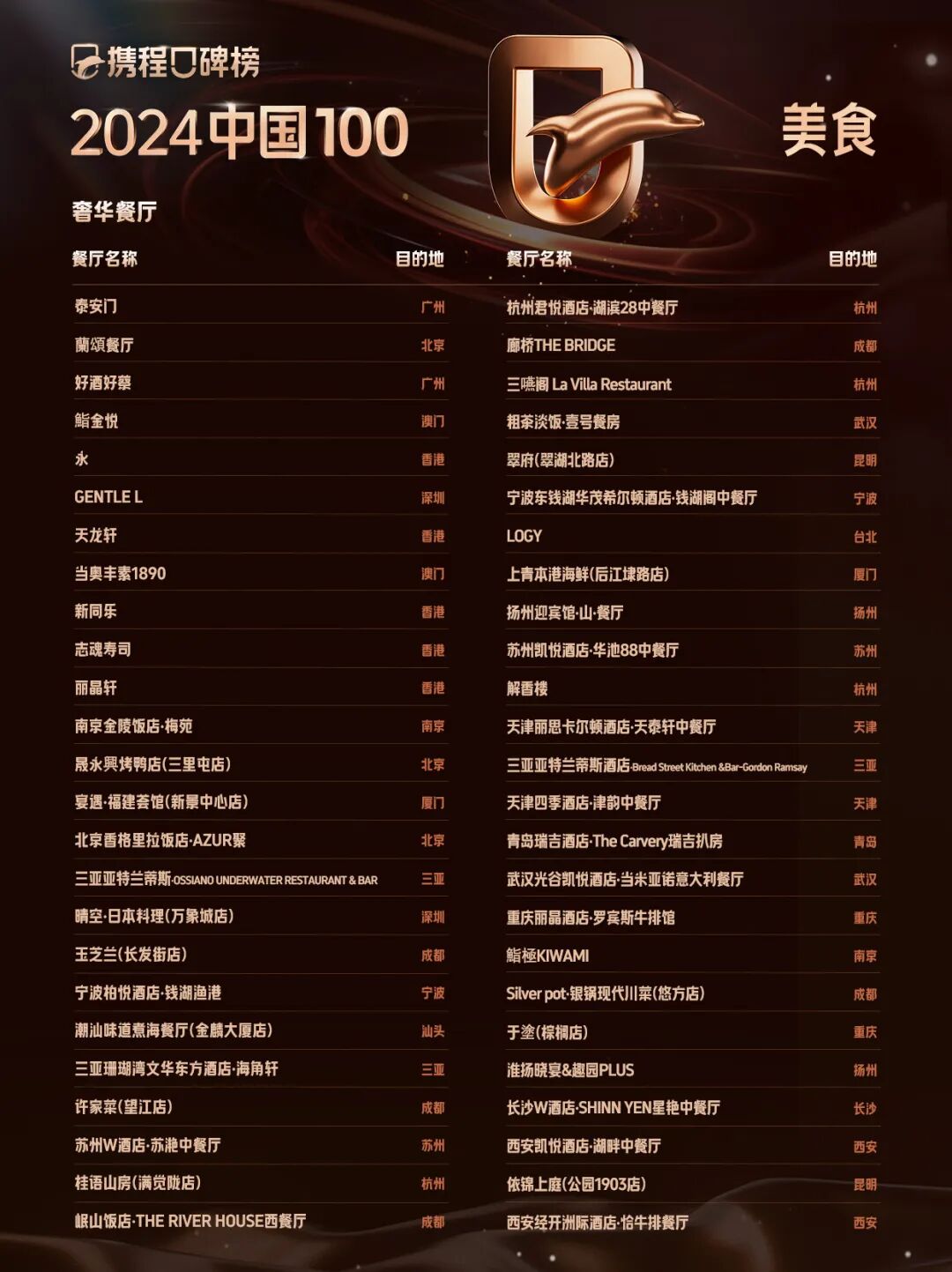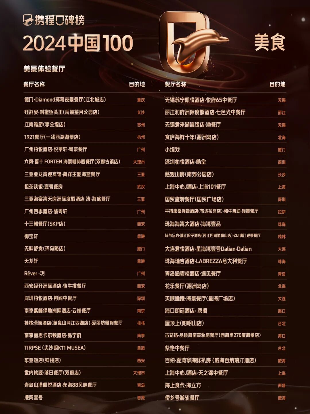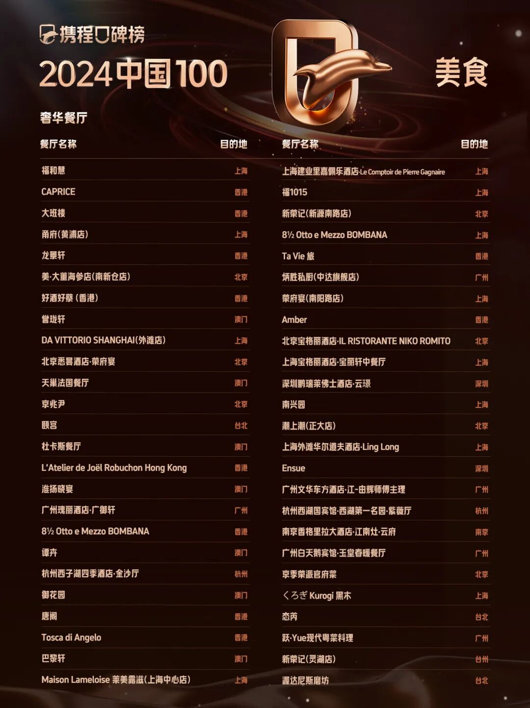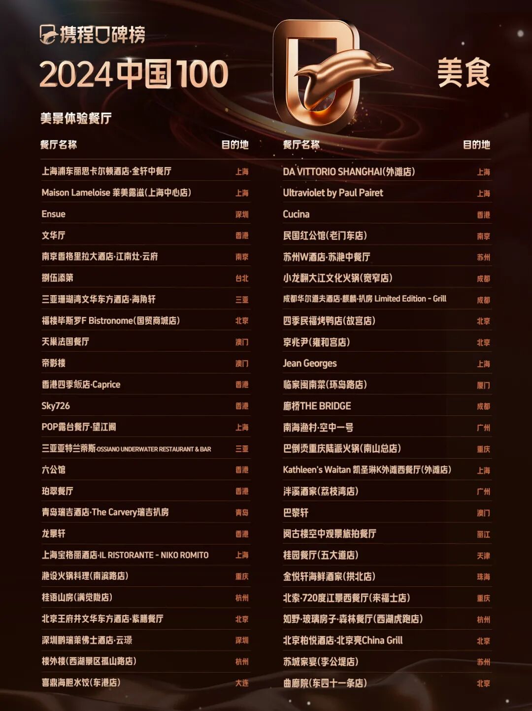 携程口碑榜2024中国100美食