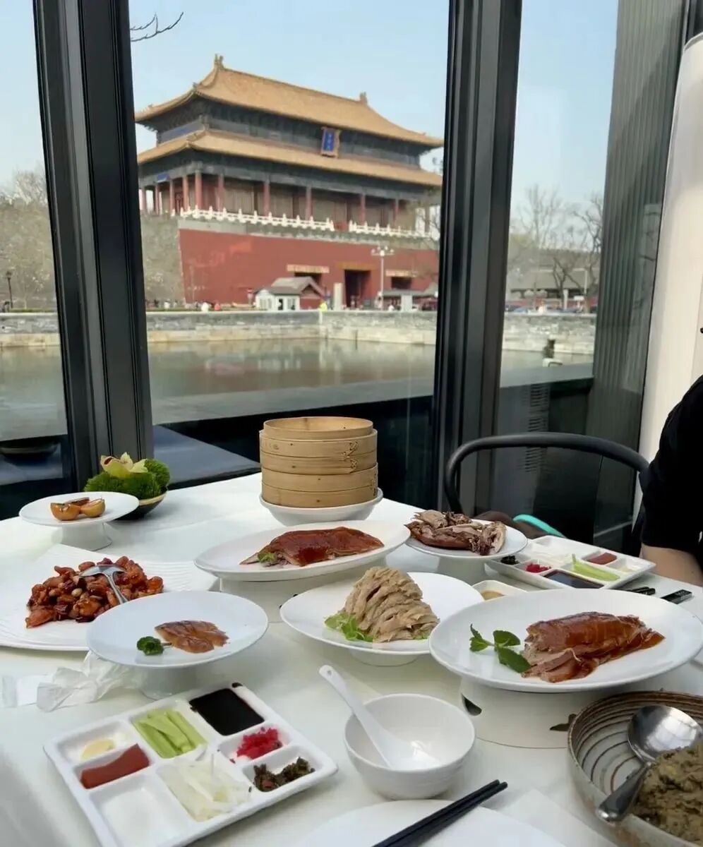 我们在四季民福烤鸭店(故宫店)里,看大雪落下,北京变成了北平。故宫就在那里,红墙黄瓦,端庄静谧。烤鸭的热气袅袅升起,入口即化。吱吱作响的贝勒烤肉,肥而不腻。