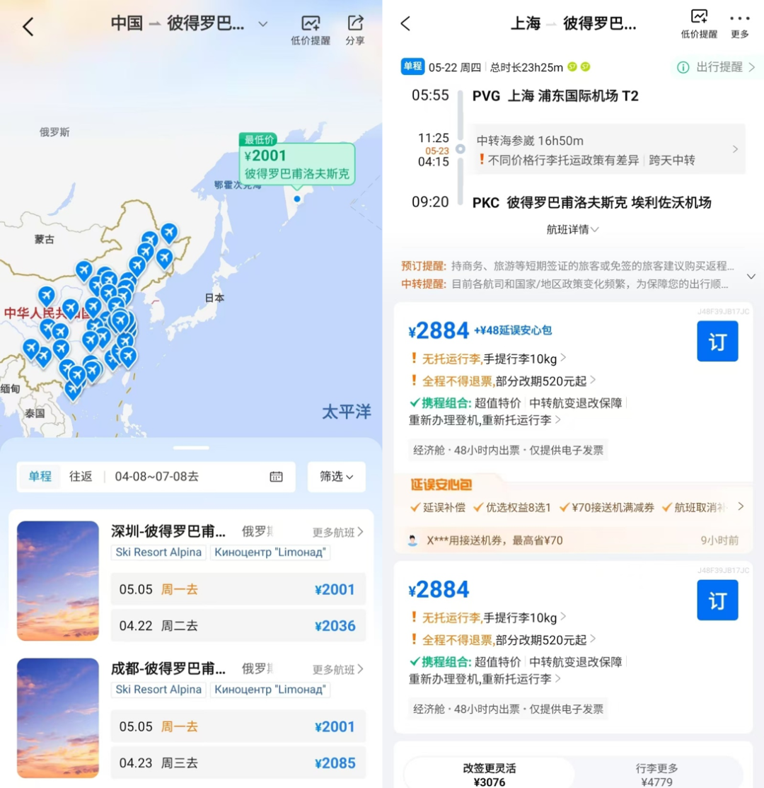 若是要前往勘察加半岛,一般是飞彼得罗巴甫洛夫斯克,不过我国暂时没有直飞,通常需要从海参崴转机。