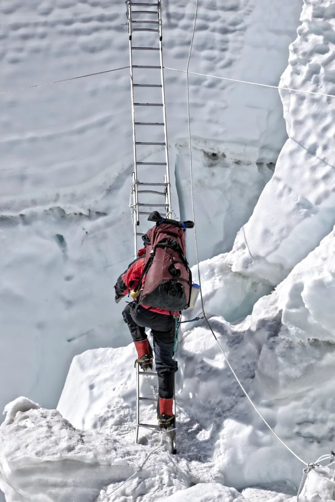 还有冰川医生的费用,上文提到过南坡必须要经过昆布冰川,冰川中有很大的裂缝并随时移动,所以需要由夏尔巴人在裂缝之间搭建横梯与绳索,用来攀登和运送物资,这项工作极度危险,许多夏尔巴人命丧于此处,可以说没有冰川医生,攀登者们是绝对无法登顶成功的。