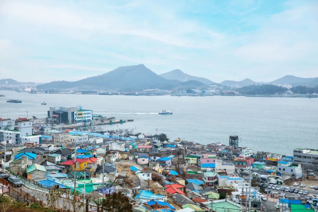 由奇岩怪石组成的儒达山,海拔仅有228米,和韩国西南端尽头的大海相连。在其山腰处,分布着一片色彩斑斓的房屋,组成了小渔村——瑞山洞诗画村。行走在胡同中,随处可见村民亲手绘制的壁画以及诗作,宛若童话世界。