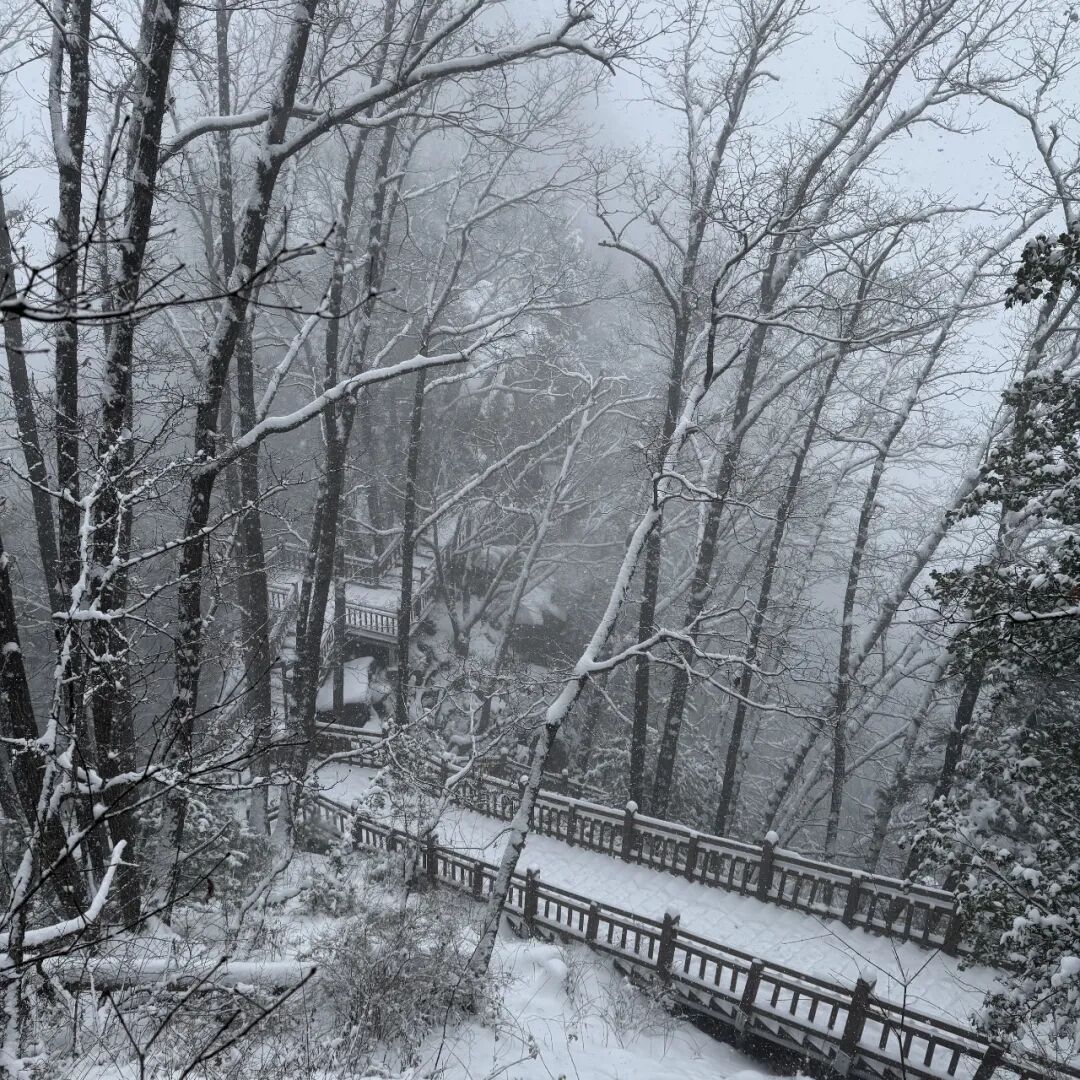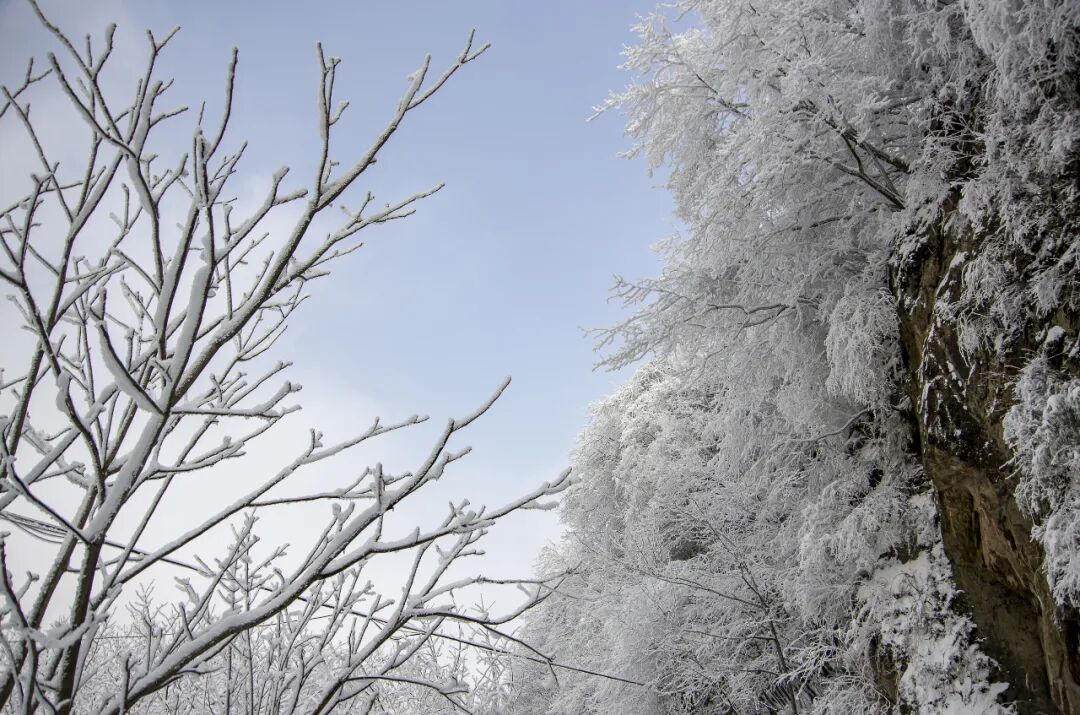 走过凤县嘉陵江源头,雪后的岭南公园是天地一色的白,苍苍白雪覆盖了整个山头,“白雪压枝头,抬头见雾凇”是对冬日岭南公园的真实写照。沿着山间小道徒步,入眼是片片披上了银装的森林,晶莹剔透的冰挂在阳光下熠熠生辉,空气也比平时清新不少,呼吸间尽是心旷神怡的舒爽。