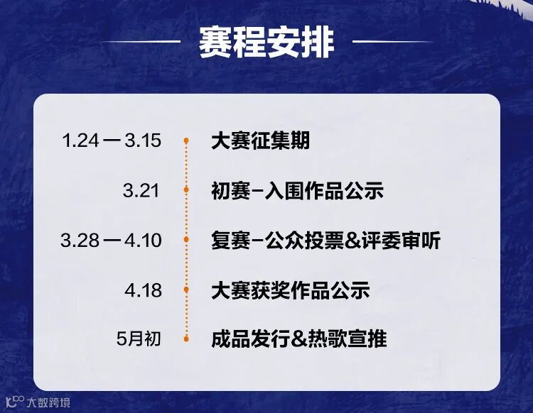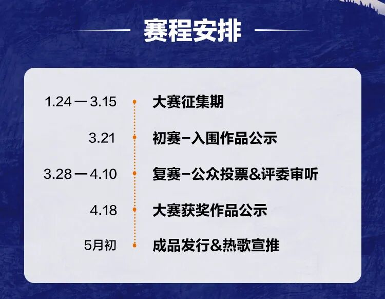 此次大赛共分为五个阶段,1月24日-3月15日为作品征集期,各位参赛选手注意及时上传,各位乐迷朋友也一定要来为你爱的城市打call!