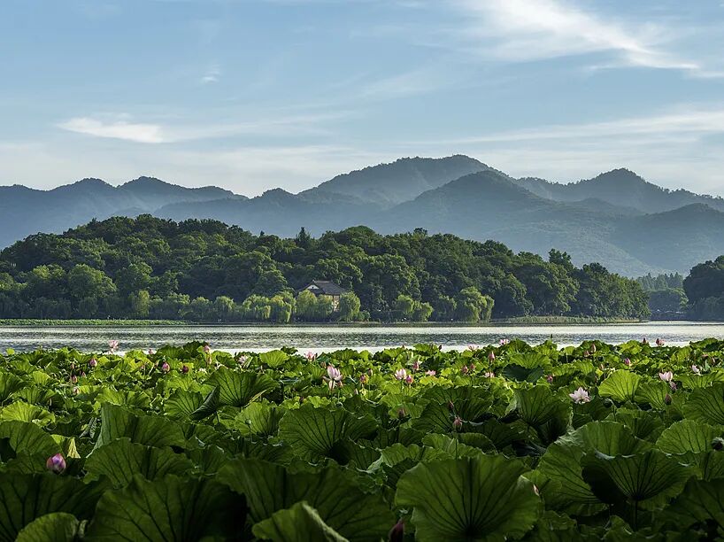行船入三潭,嬉戏着湖水,微风它划不过轻舟