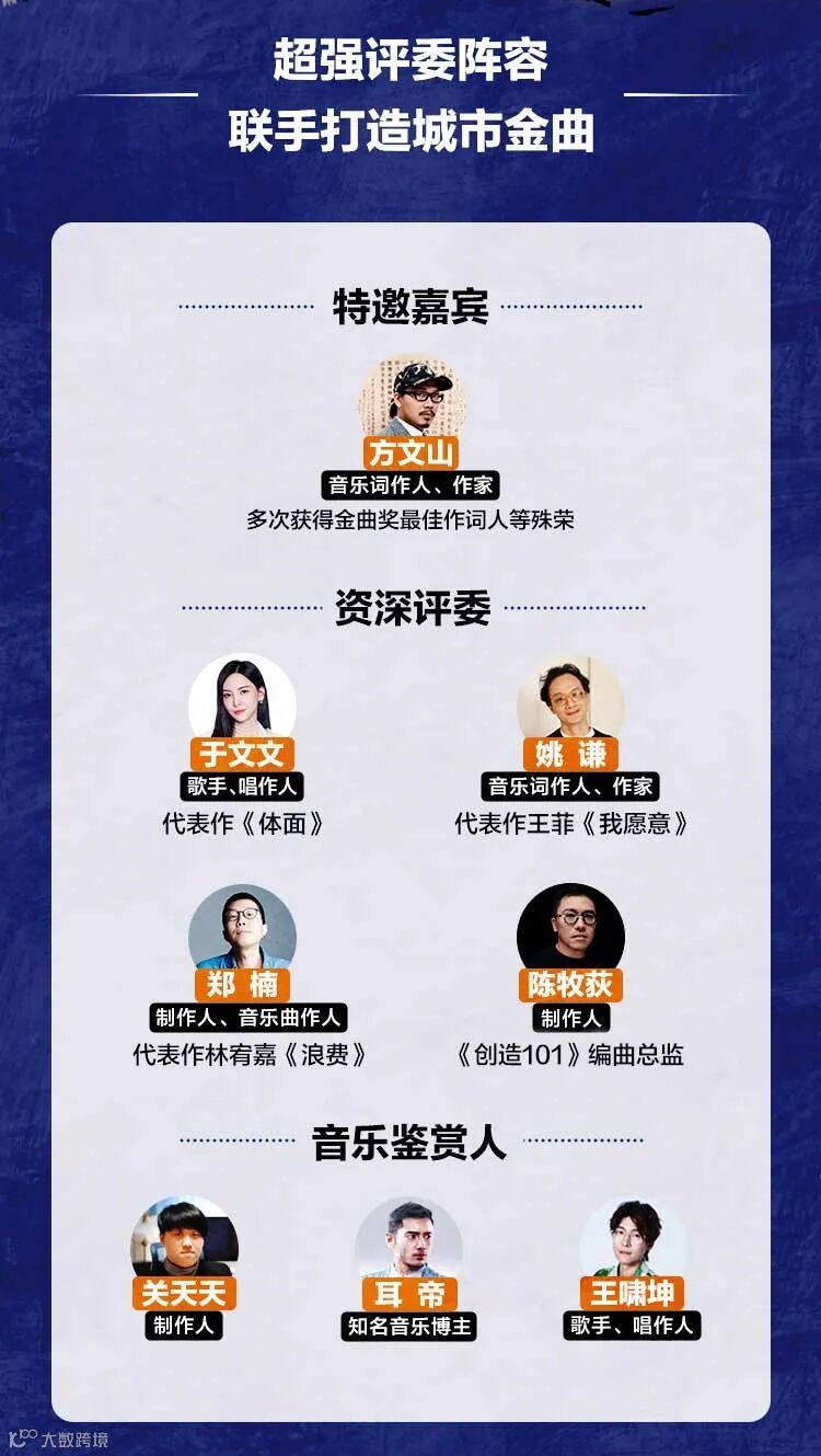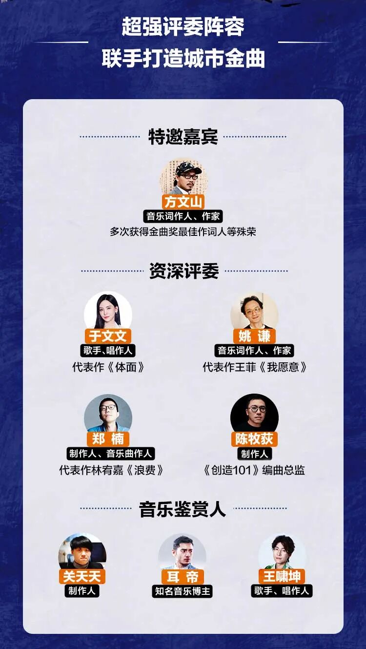 本次大赛,嘉宾和评委阵容更是重量级,音乐圈里资深的前辈和实力大咖齐聚,给比赛带来更专业的视角!另外还将邀请头部歌手演唱,说不定你的作品就是你的偶像来演绎!