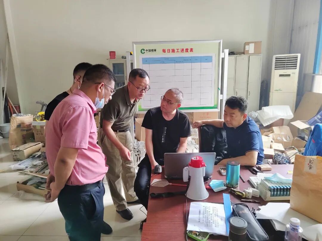 徐信荣一行来到现场工程指挥部,与现场工作人员进行交流,对现场各项工作给予肯定。徐信荣指出,希望单机产品从结构简单、功能优化、设备可靠、成本可控、安调简便等方面进行提升;希望电气控制从电控方案设计、控制程序、器件选型等方面多优化;希望软件开发从整个系统的全生命周期管理着手,借沧州项目的契机推出新产品,实现工厂的智能化落地;希望现场做好统一协调管理,开展好“安全生产月”宣传教育活动,时刻牢记“安全第一”。