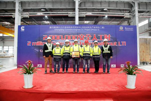 截至12月6日必维数据监测,重庆康明斯BFG 项目顺利取得200万安全无损失人工时已累计至2,094,372MH的里程碑,未发生损失工时及可记录事故。开展新进场人员安全培训268次,累计安全培训2315人次。每周组织项目安全周会,并针对违章作业单位召开专项安全会议,累计127次。每周组织项目管理层联合安全检查,和参与CCEC COT 领导层双周安全检查,累计检查138次,不符合项100%整理关闭,并对组织现场承包商项目经理,安全管理人员,区域安全主管现场安全检查。积极有效和参建单位及CCEC项目管理团队沟通和持续反馈,提供有效相应回复及专业安全管理服务。