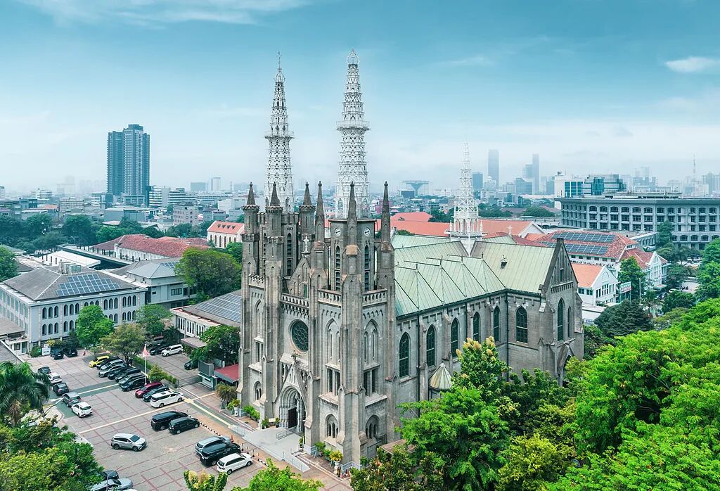 在雅加达可以看到许多带有“尖顶”的建筑,雅加达大教堂便是其中之一,白色的新哥特式风格在一众建筑中分外醒目,洋溢着欧式建筑独特的优雅情调。