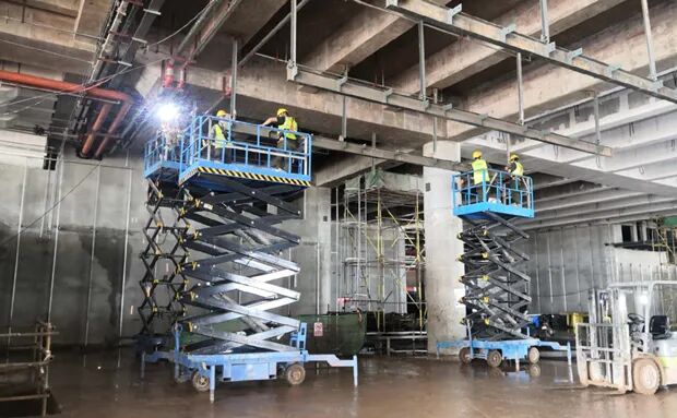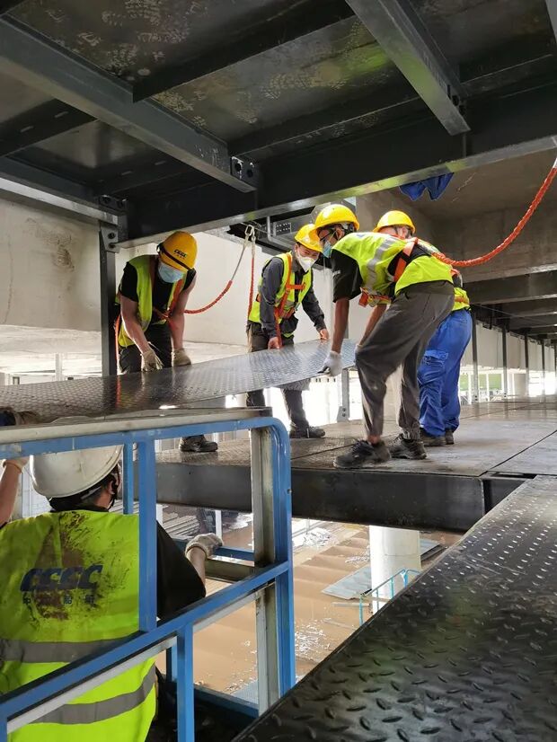 在行李处理系统配套钢结构平台施工过程中,由于施工作业空间不足,无法使用吊装机具等机械化设备,为确保项目顺利进行,项目经理张晋文带领共计十五人的项目团队成员集思广益、攻坚克难,依托登高车,采用肩扛、背托、手举等方式将几十公斤甚至几百公斤的转换梁、钢梁、花纹板等安装到位。同时现场严格落实安全生产施工制度,责任到人,按照最高标准、最严要求做好现场安全管理,以保护现场工作人员生命安全和身体健康为前提,保质保量完成施工任务。
