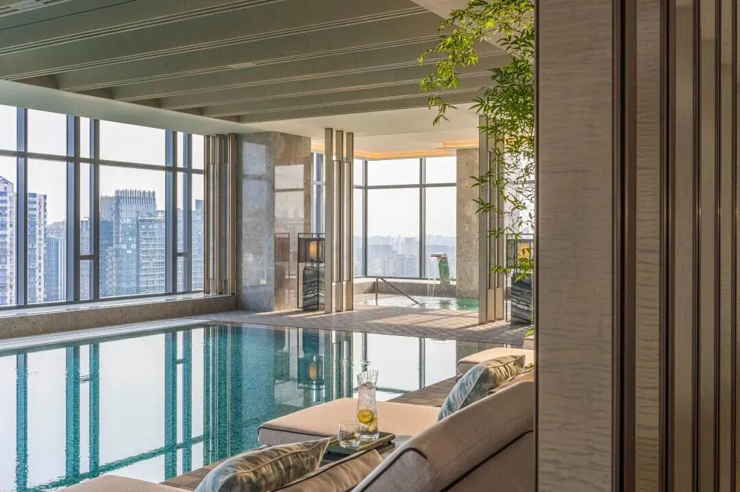 康养是酒店的一大服务核心,整个18层都是,有SPA水疗中心、健身房以及25米长的室内恒温泳池都在这里。