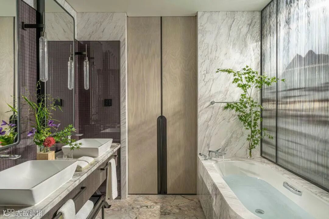 洗漱区域和卧室由折叠门分隔开来,大大保证了私密性和舒适度。所有的房间都有浴缸,泡澡时被断桥和垂柳围绕,舒服的冒泡了!