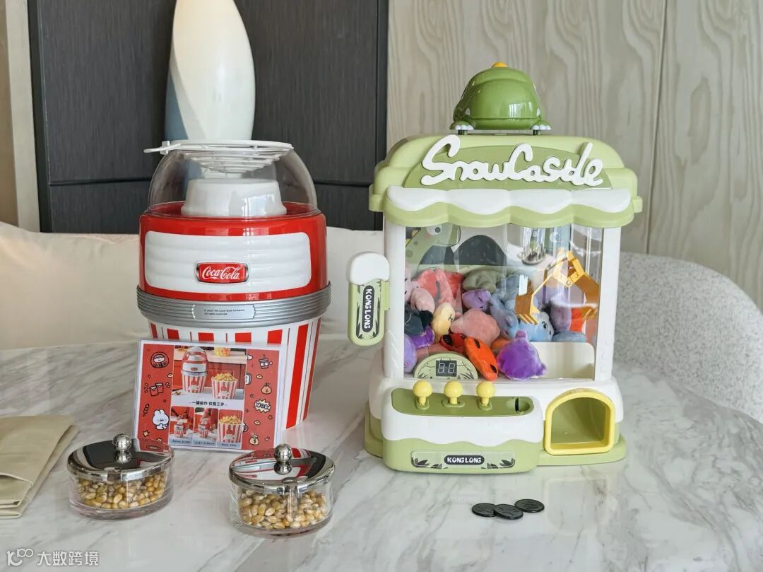 另外套房有26间,亲子元素拉满,准备了爆米花机和迷你抓娃娃机,还有个小帐篷,崽在室内也不无聊。