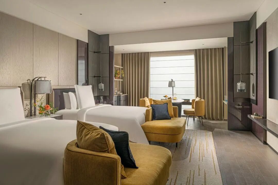 整体酒店有188间客房和26间套房,分别位于19至29层,俯瞰城景、江景和西湖,而转角套房的视野则更加开阔,迷人景色可尽收眼底。