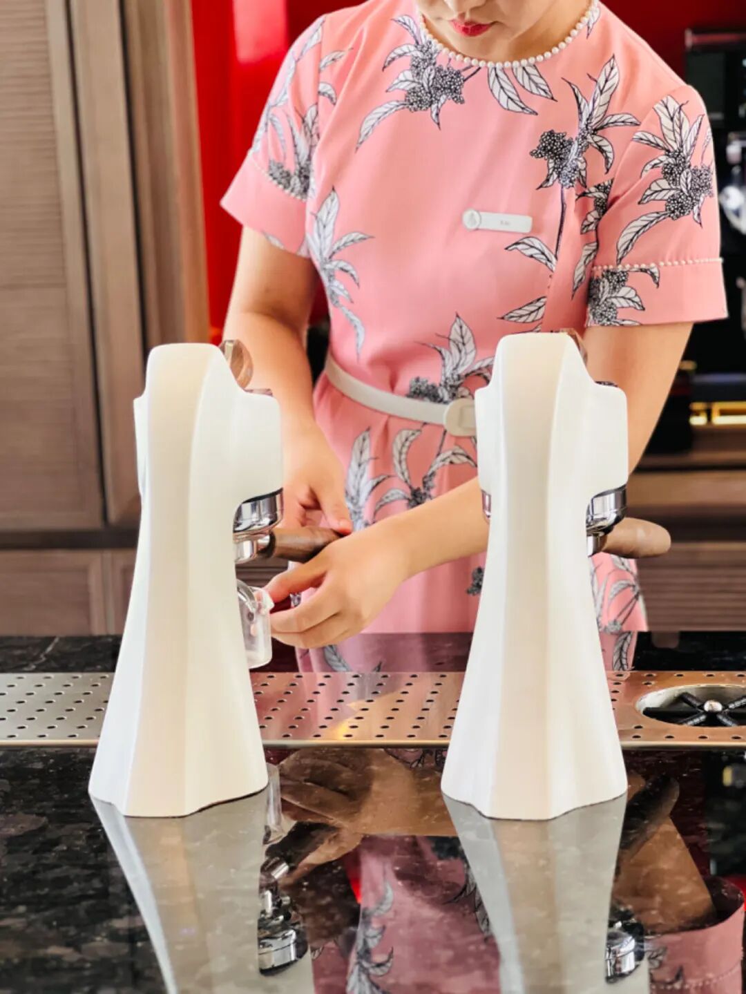 大堂吧的辣妈modbar台下咖啡机有点东西,机身隐匿在吧台下,摆在吧台上就是艺术品,哪个咖啡脑袋不想拥有?
