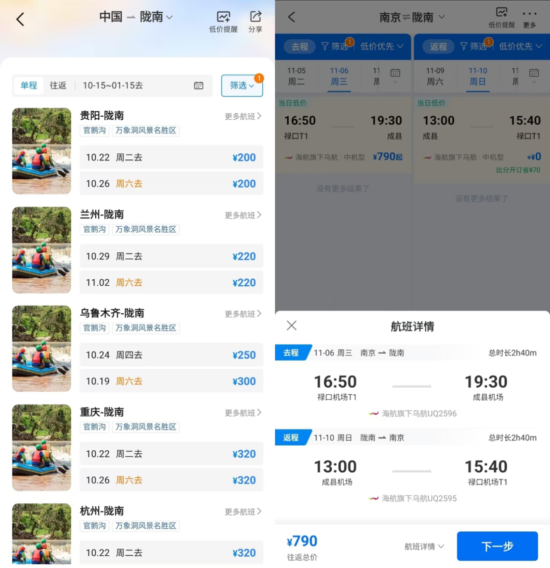 全国多地都有前往陇南的直飞,给大家看了一眼机票,单程基本两三百就能搞定;