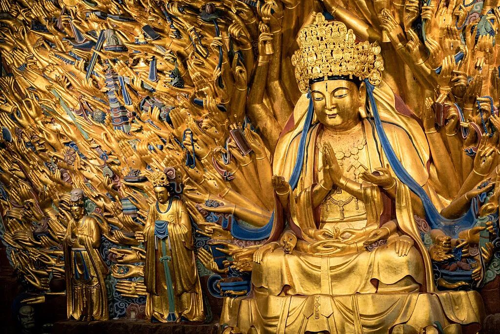 2021年发布的实机测试中,出现了一尊千手观音,原型即是大足石刻宝顶山的千手观音。