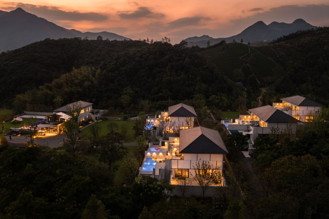 酒店位置在杭州余杭区的龙坞茶山下,西湖龙井的茶香从山顶飘到山脚。出门便是一条通往茶园的小径,可以漫步在杭州最大的茶园—龙坞茶田间,漫山遍野的茶园景色,美极了~不愧是被称为杭州小圣托里尼!这里也曾是杨丞琳、小鬼等嘉宾录制《闪光的乐队》的取景地。