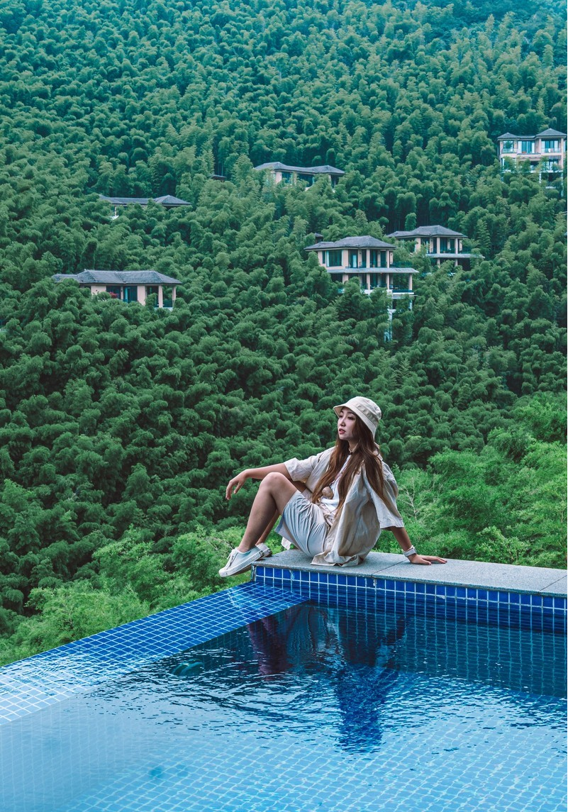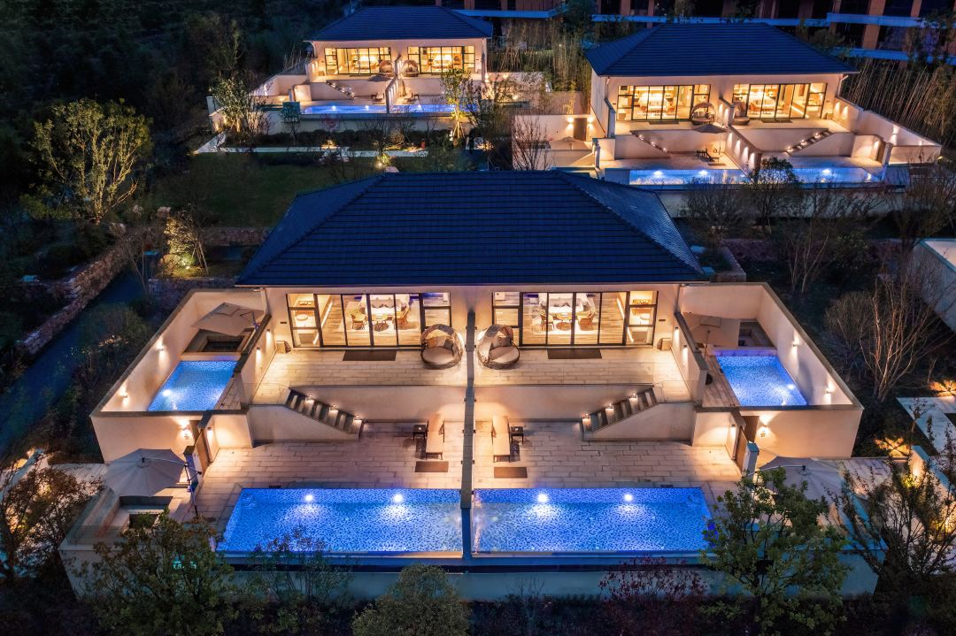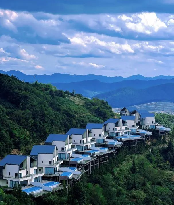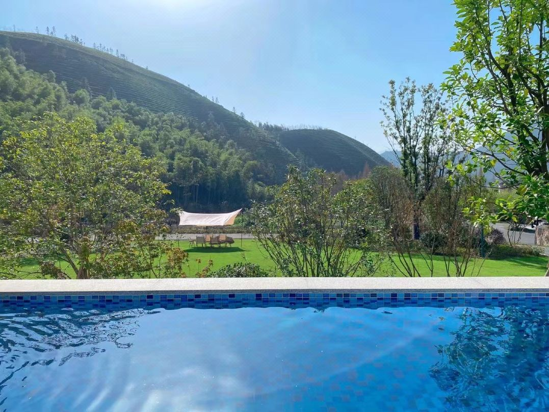 图卷9号在江省金华市磐安县,杭州开车过去2个半小时。酒店是全泳池别墅度假村,从房间推门而出,就能直接跳进泳池,直面层峦叠嶂的山群,感受林间的清新和草木芳香。