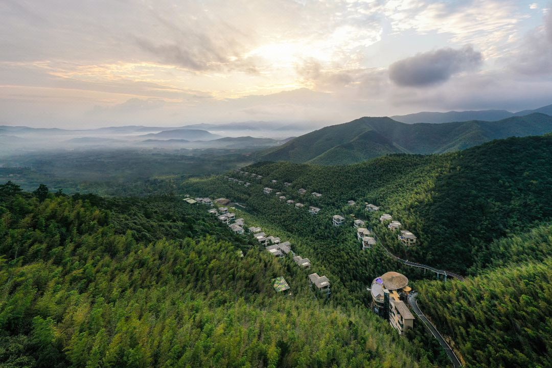 酒店位置更是得天独厚,整体随溪谷两岸依势而建,位于国家AAAAA级景区“南山竹海”内,倚靠着3.5万亩茂密的竹林,将酒店与外界的喧闹隔离开来,在山野美景间远离纷扰。