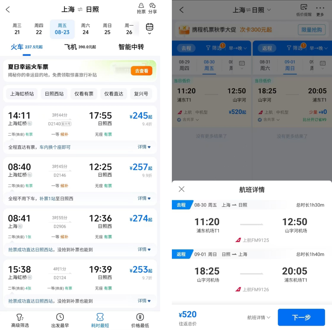 从距离来说,日照离江浙沪更近,以上海为例,高铁最快3小时44可以到达,单程票价仅200+,机票也不贵,周末直飞往返500+。