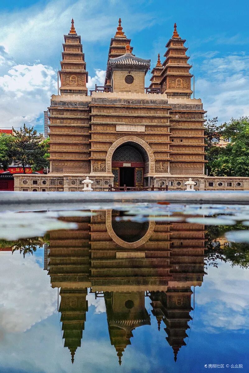 呼和浩特旧城东南方向,五座高塔组成了这处造型奇特的“五塔寺”,糅杂着藏传佛教、汉族宫殿、游牧民族等多方特色,棕红色的外观更显得庄严肃穆。
